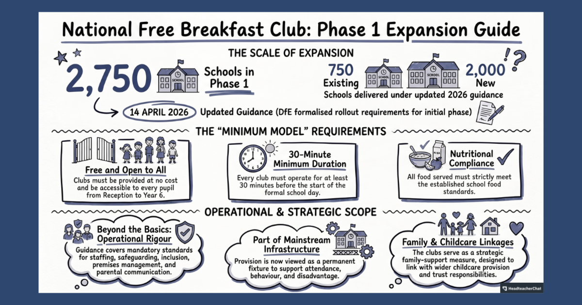 Explore the latest DfE updated guidance on free breakfast clubs for Phase 1 rollout. Essential insights for headteachers on implementation, eligibility, and next steps. Join the discussion on HeadteacherChat.