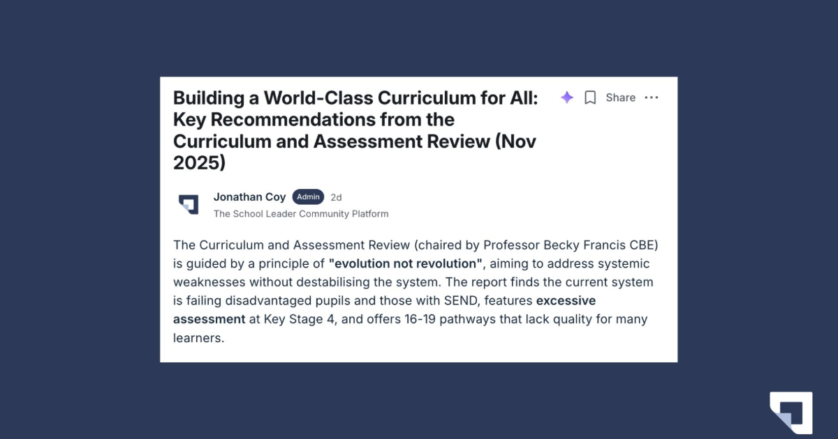 Building a World-Class Curriculum: Key Recommendations from 2025 Assessment Review | HeadteacherChat