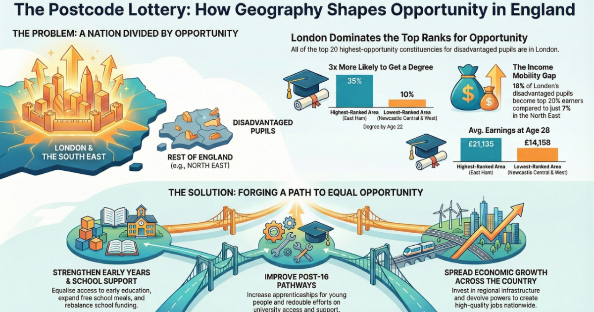 Explore how geography impacts social mobility and educational opportunities across England. Essential briefing for headteachers and education leaders on regional disparities and policy implications.