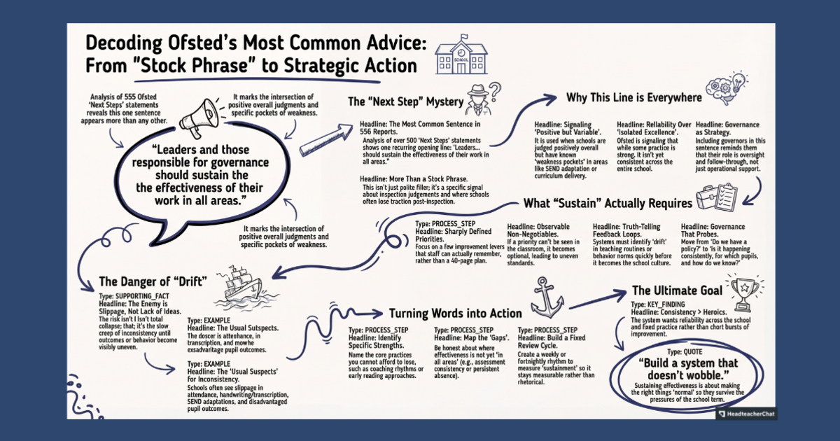 Discover the most common sentence in Ofsted next steps recommendations and learn why it matters for school improvement. Essential insights for headteachers and education leaders.