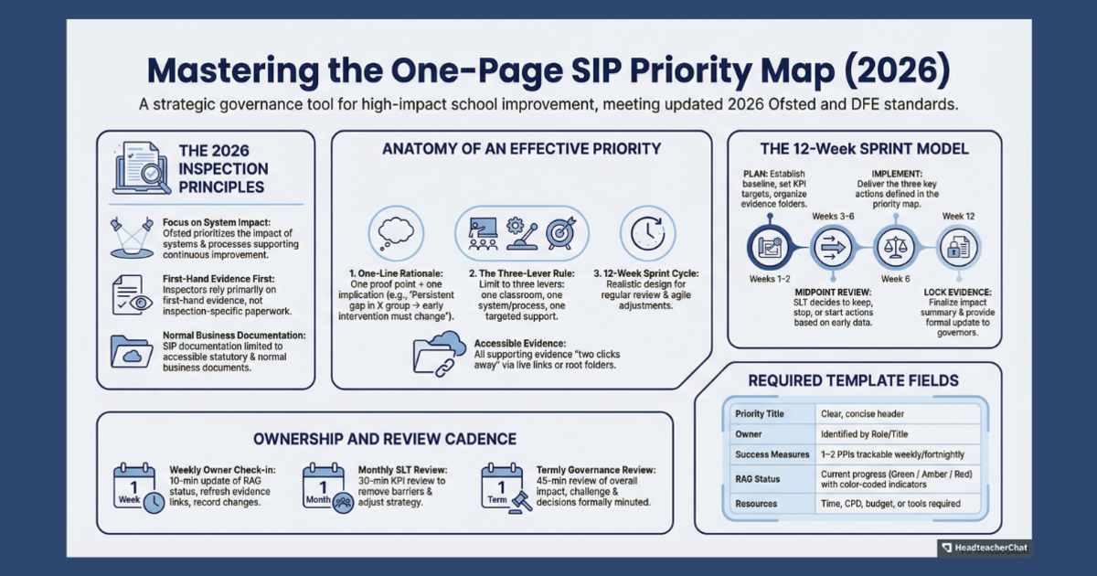Download our new one-page SIP priority map resource - inspection-ready school improvement planning tool that displays all priorities in a single view. Perfect for headteachers and school leaders.