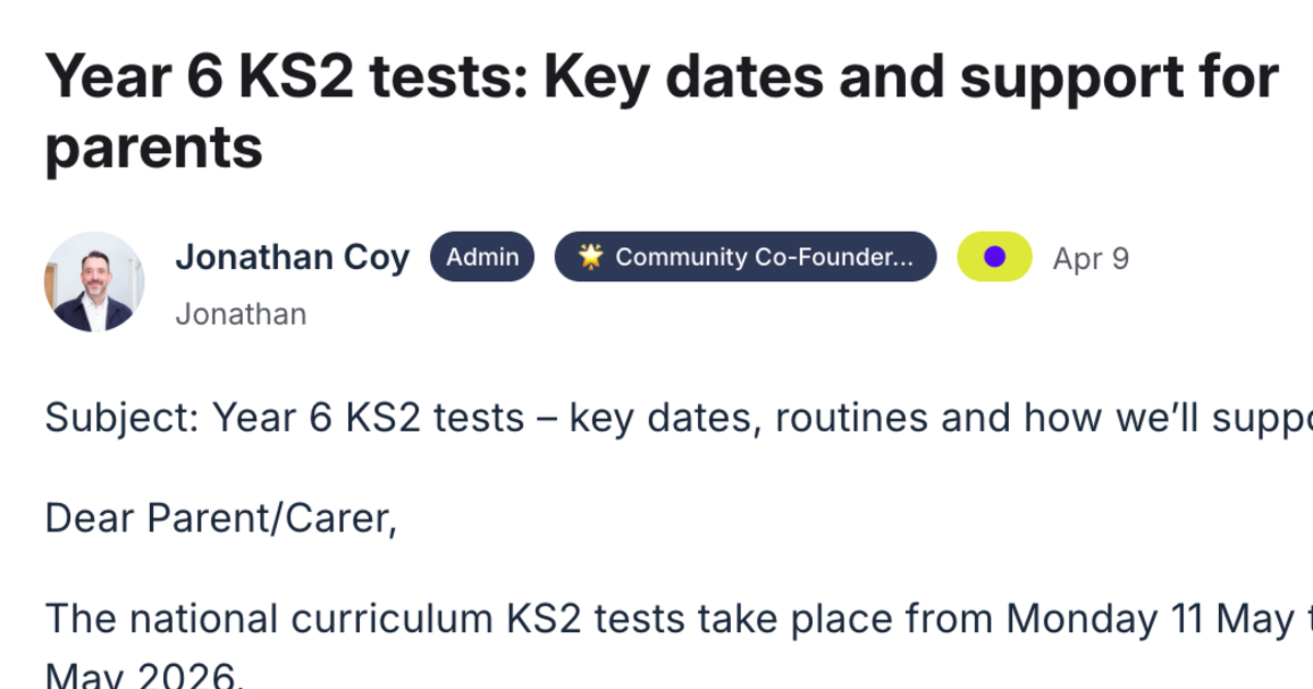 Visit community.headteacherchat.com/c/april-pack/parent-letter-year-6-ks2-tests